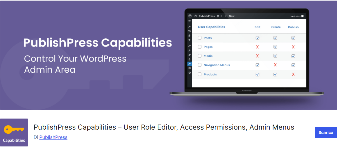 Cosa fa: Questo plugin si concentra sulla modifica delle capacità associate ai ruoli. Offre un’interfaccia intuitiva per configurare ruoli su misura, senza bisogno di conoscenze tecniche avanzate.