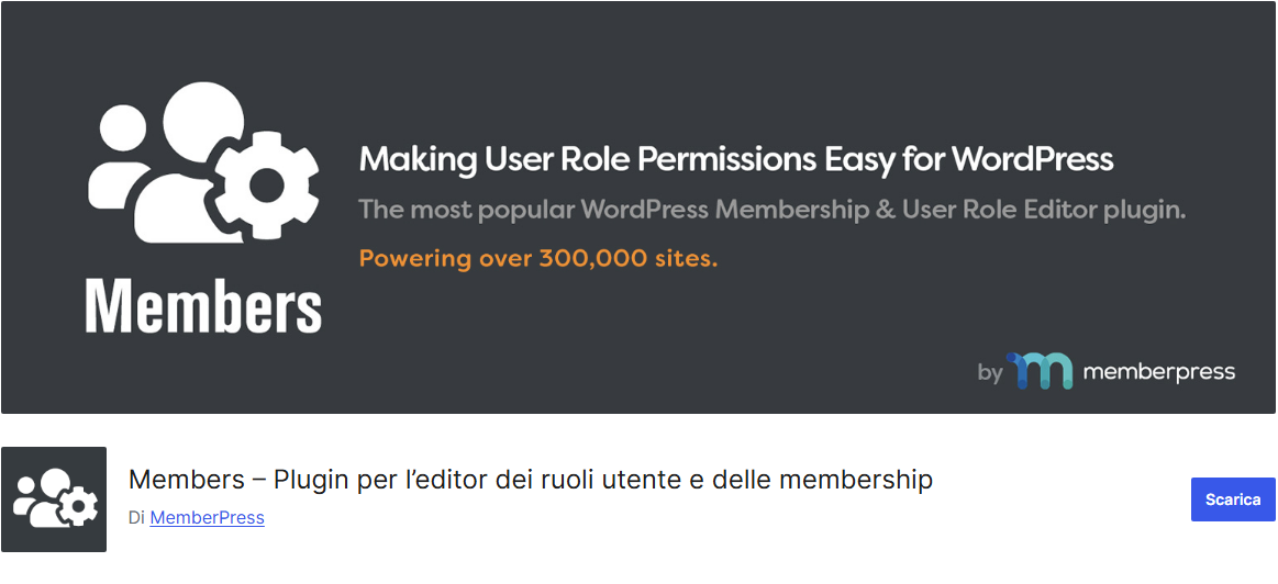 Cosa fa: Members è un plugin intuitivo e versatile che consente di gestire i permessi utente e proteggere contenuti riservati. È particolarmente utile per siti che offrono contenuti esclusivi o abbonamenti.